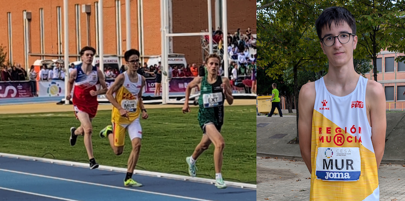 El atleta de La Unión acabó en el puesto décimo primero de la prueba del kilómetro del Campeonato de España sub-16 disputado en Tudela (Navarra), donde tuvo que reponerse del choque con otro participante durante la carrera. Una hora más tarde formó parte del equipo de relevos 4x300 con el equipo de la Región de Murcia, siendo segundos en su serie.