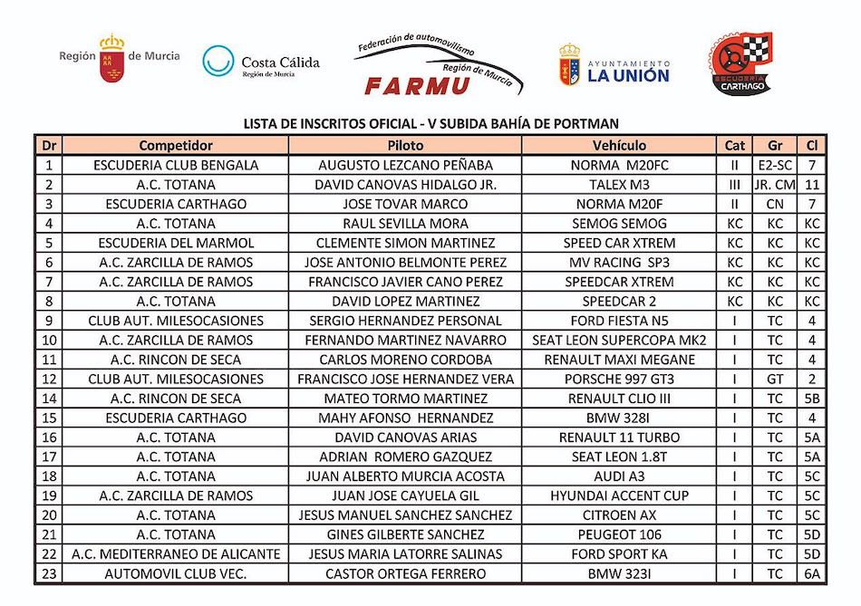 El programa comienza a las 8 de la mañana de este próximo sábado con las verificaciones, a las 12 se cortará la carretera al tráfico (el acceso a Portmán se podrá efectuar por Los Belones y Atamaría) y a las 13.30 horas se iniciarán los entrenamientos libres. A continuación se realizará la manga de entrenamientos oficiales, y las dos mangas de carrera que compondrán las cuatro pasadas previstas al tramo.