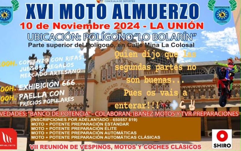 Muchas propuestas, especialmente deportivas con el trofeo ciclista del sábado, el trail del domingo y los partidos del CD Vedruna de fútbol sala, Surmenor de voleibol femenino y del fútbol con salida del Ciudad de La Unión, mientras que el líder visita a La Unión Atlético. El domingo tendrá lugar el motoalmuerzo motero en el polígono industrial. Además, actividades infantiles en Roche y Portmán. En este pueblo costero hoy se despide 'Don Juan Tenorio'.