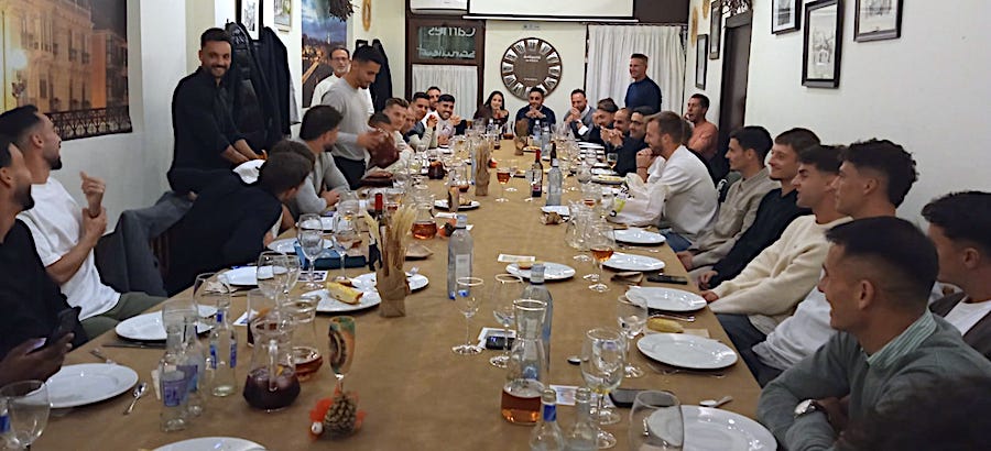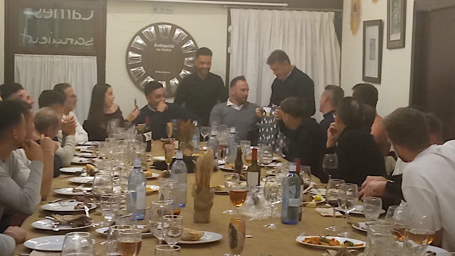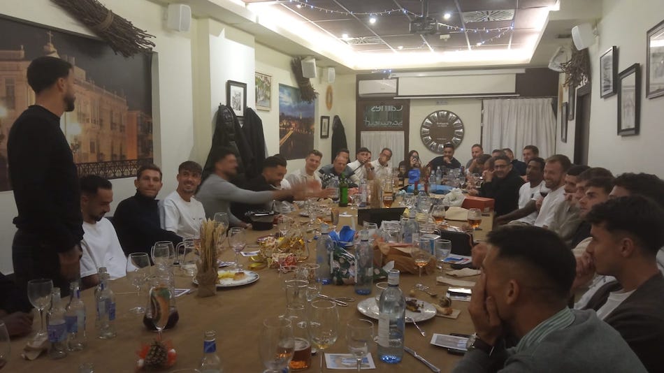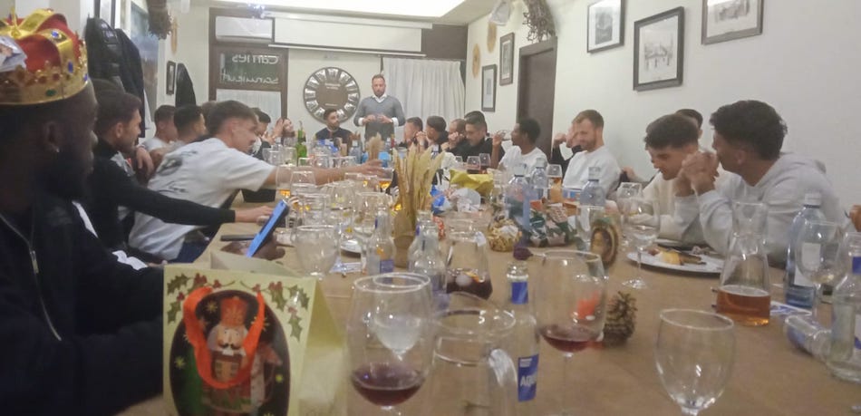 La directiva, técnicos, empleados y jugadores de La Unión Atlético han celebrado una cena de Navidad cargada de animación y simpatía que refleja el buen ambiente que existe en torno a un equipo que está llevando a cabo una estupenda temporada.