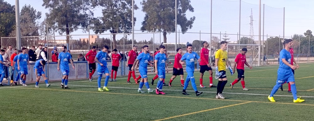 El CD Ciudad de La Unión, que está en plena fase de enfrentarse a los primeros de la clasificación, consiguió empatar en el minuto 48 pero su reacción fue frenada por las expulsiones, acabando el partido con nueve futbolistas sobre el terreno de juego por un arbitraje que les perjudicó. En la foto, Ramón Quereda, presidente y jugador del equipo, que ejerció de capitán, fue el autor del gol y resultó expulsado en el minuto 51.