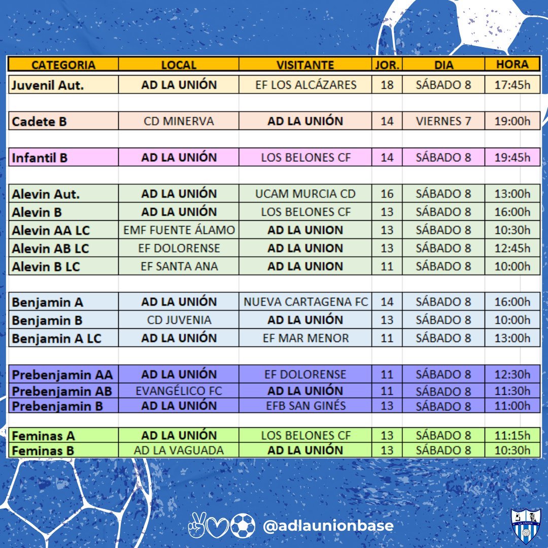 - Sábado: Molina-Infantil A (10 horas) y Molina-Cadete A (12 horas) en el pabellón El Romeral 3 de Molina de Segura / Playas Cartagena 2-Juvenil (10 horas) en el pabellón de El Albujón