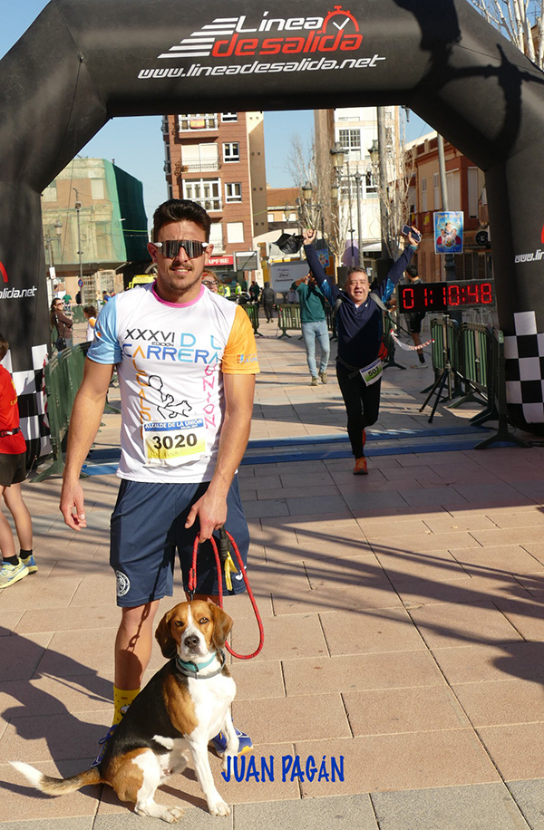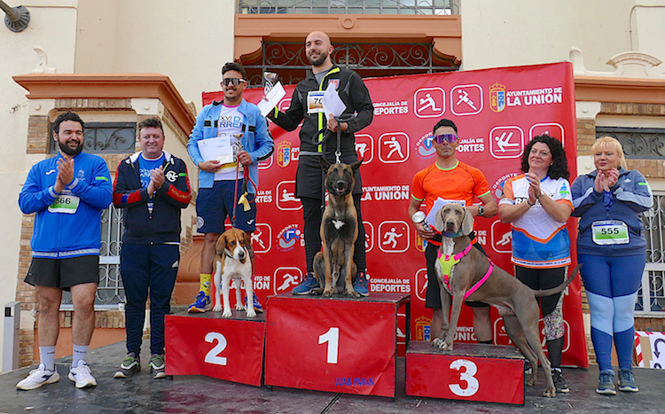 Jose Muñoz Candel, quien juega como futbolista en el CD Ciudad de La Unión como lateral derecho, participó ayer en el 'VI Cross canino Ciudad de La Unión', donde logró el segundo puesto de la clasificación final con su perro 'Burry'.