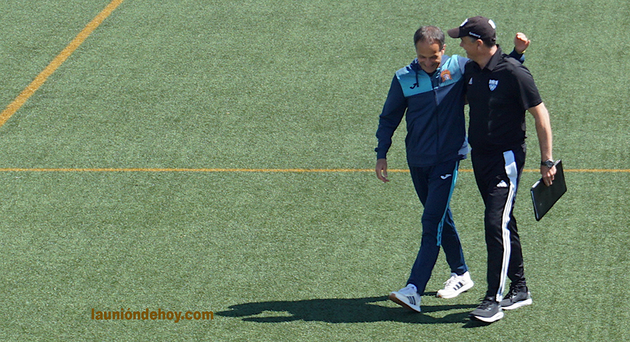 El entrenador de La Unión Atlético, José Miguel Campos, lamenta no haber conseguido, al menos, un punto pese a hacer más méritos y tener más ocasiones de gol que el rival, resaltando que su equipo ha vuelto a sobreponerse a las lesiones de futbolistas. De cara al decisivo partido frente al Linense quiere que impere el pensamiento positivo y que pueda recuperar jugadores que están lesionados. En la foto, el técnico local con Fran Alcoy, entrenador visitante, dirigiéndose al banquillo antes de empezar el partido