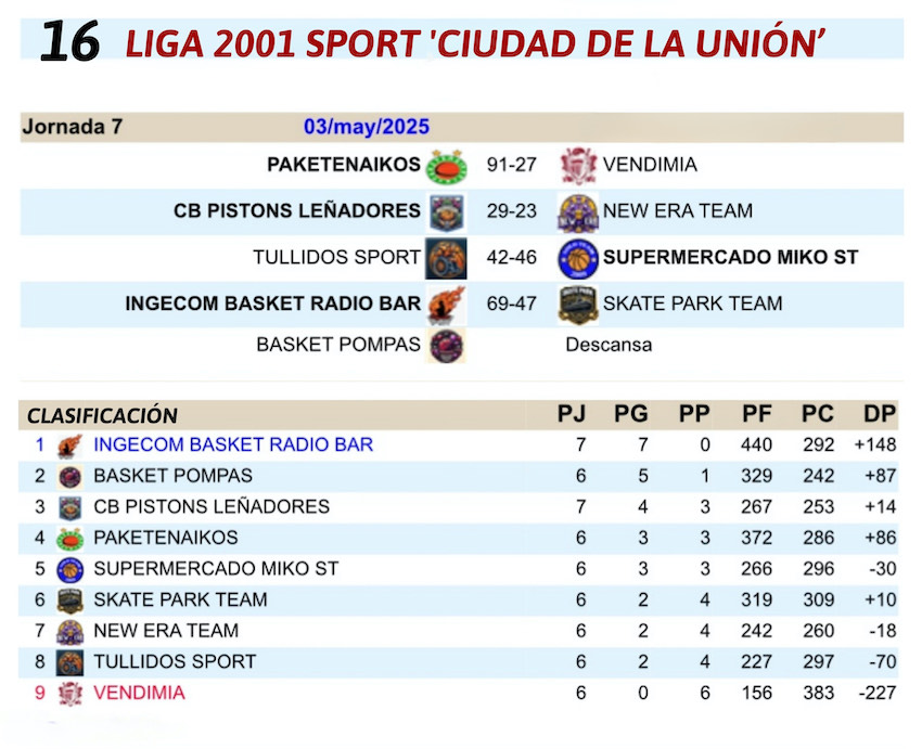 Ingecom Basket no cede y alcanza la séptima victoria de la temporada, continuando como líder en solitario. Por la cola sigue sin estrenarse Vendimia, mientras que CB Pistons Leñadores se consolida en el tercer puesto y acecha al Basket Pompas, que descansó esta semana.