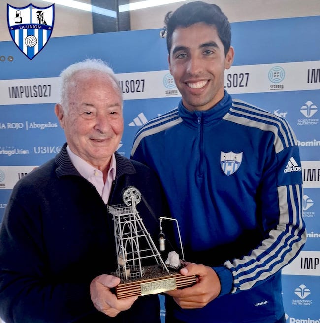 El extremo e interior izquierdo de La Unión Atletico ha recibido el trofeo que cada temporada otorga Juan Pagán al máximo realizador en liga del primer equipo de fútbol de La Unión.