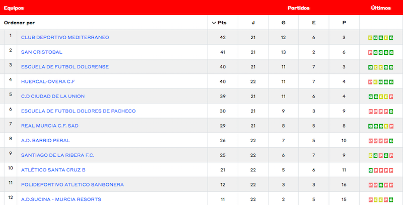 Como se observa en la clasificación, y teniendo en cuenta que Huercal-Overa ya ha disputado el partido de esta jornada, acabar primero es complicado para el Ciudad de La Unión, tanto por el rival que tendrá enfrente como porque CD Mediterráneo y AD San Cristóbal se enfrenta a rivales que no se juegan nada (EF Dolores de Pacheco y Real Murcia C, respectivamente). Sin embargo, existen cada vez más rumores de que la preferente autonómica podria esta próxima temporada ampliarse a dos grupos, lo que supondría, al menos, que el segundo clasificado de segunda autonómica también ascendiense, por lo que sólo vale ganar este domingo para el Ciudad.
