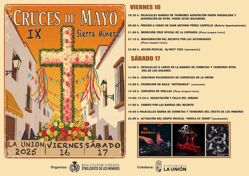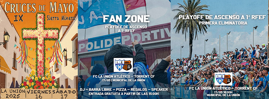 Las cruces de mayo de los procesionistas animan el centro de La Unión durante hoy y mañana, cuando compartirán protagonismo con el decisivo partido de La Unión Atlético en su lucha por ascender, siendo novedad la 'zona de fans' que se abrirá a las tres de la tarde en el polideportivo. Este fin de semana también es especial para el Ciudad de La Unión de fútbol y para el CD Vedruna de fútbol sala juvenil y alevín, pues se juegan títulos y ascensos. También hay partidos para el Club Baloncesto Sierramar y para la AD La Unión de fútbol base, además de la novena jornada de la liga local 2001 Sport.
