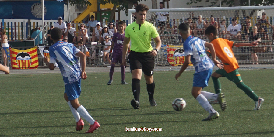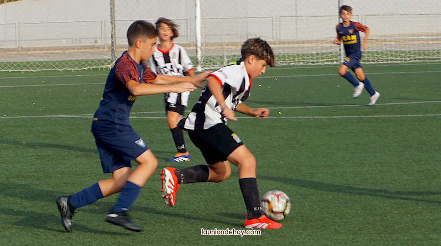 Las imágenes de este artículo ofrecen diversas escenas de partidos y equipos participantes, como Valencia CF, EF Catarroja, Cartagena FC, UCAM Murcia, FC Barcelona, Doble M, etc. en el campo de fútbol Miguel Expósito del polideportivo minero. Hoy comienzan las rondas finales, disputándose la final sobre la una de la tarde en Los Alcázares, aunque los partidos previos se disputarán tanto en ese terreno de juego como en La Unión.