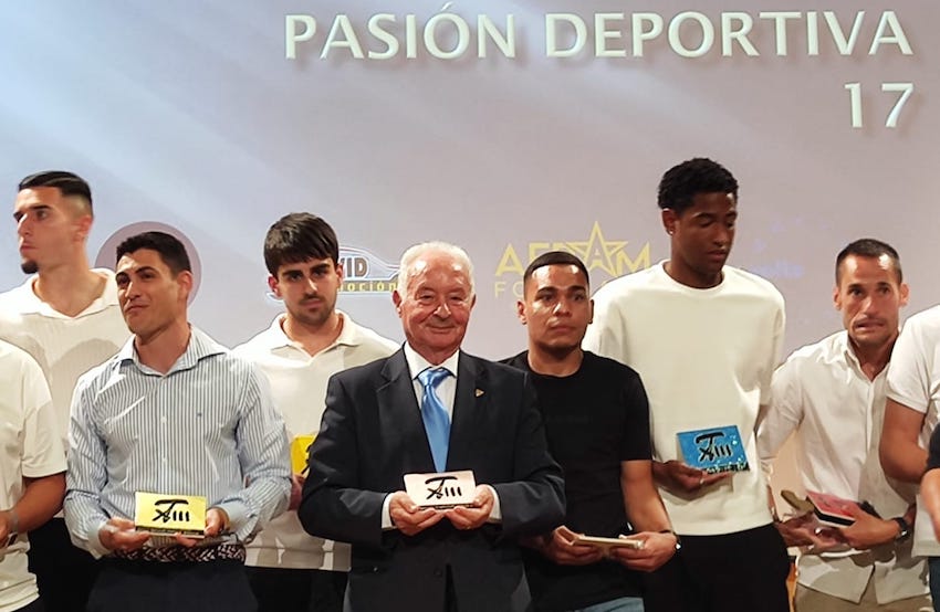Todos los premios son resueltos por los objetivos éxitos de la temporada 2024/25 y por votaciones de diferentes jurados, quedando uno de los galardones a criterio de la organización en base valores que van más allá de los resultados. En esta ocasión, la 'Mención especial' ha tenido como destinatario a Juan Pagán Rivas, un unionense cuya honda huella también ha alcanzado al fútbol regional, como expuso Damián Bravo, el presentador de la gala, cuando dio a conocer sus méritos ante los asistentes, recordando su labor con la cámara y con otras iniciativas, como es la entrega anual de los 'Castilletes mineros' a los máximos goleadores del primer equipo unionense cada temporada. "El premio se lo damos por lo que ha hecho, pero, especialmente, por cómo lo ha hecho, siempre dispuesto a ayudar", indicó Bravo, siendo Francisco Sarabia, también directivo de 'Trecera.com' quien le hizo entrega del trofeo.