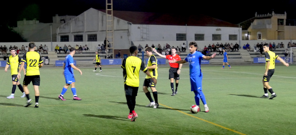 Partido de la sexta jornada del grupo I de primera autonómica de fútbol disputado en horario nocturno en el campo de fútbol Miguel Expósito del polideportivo Antonio Sánchez de La Unión, que está en obras, ante más de un centenar de espectadores.