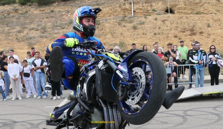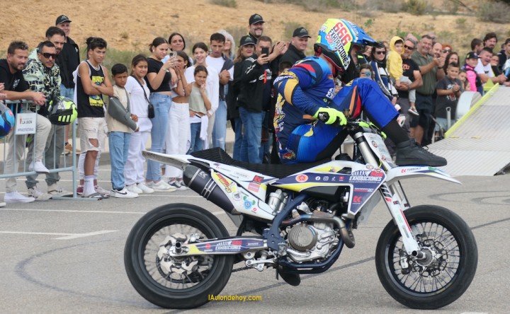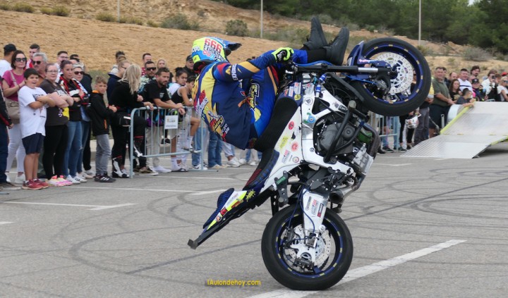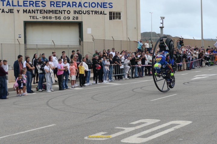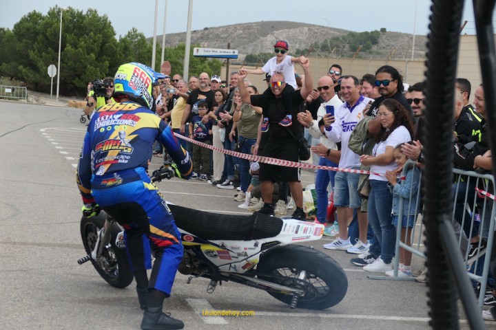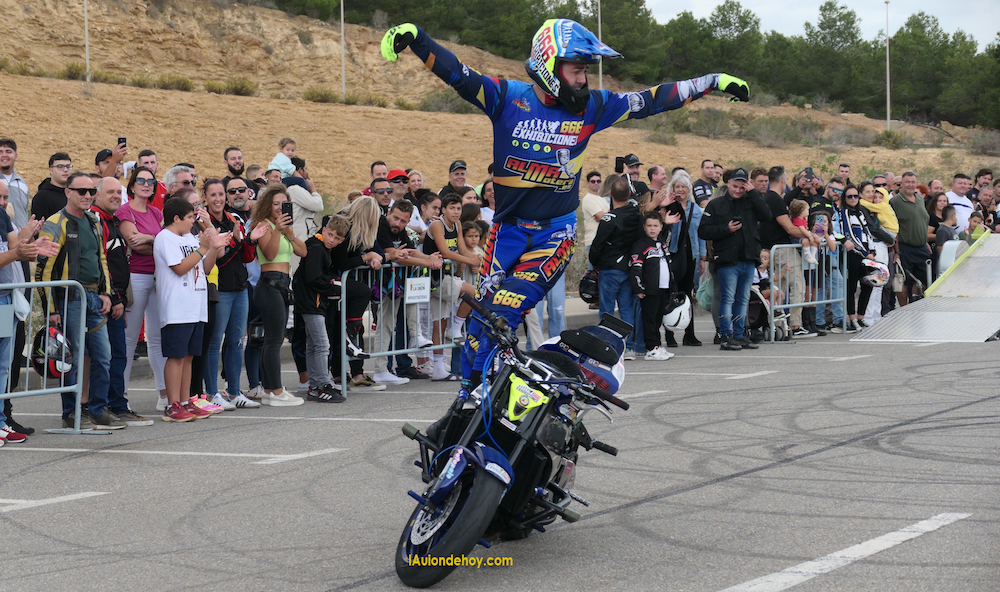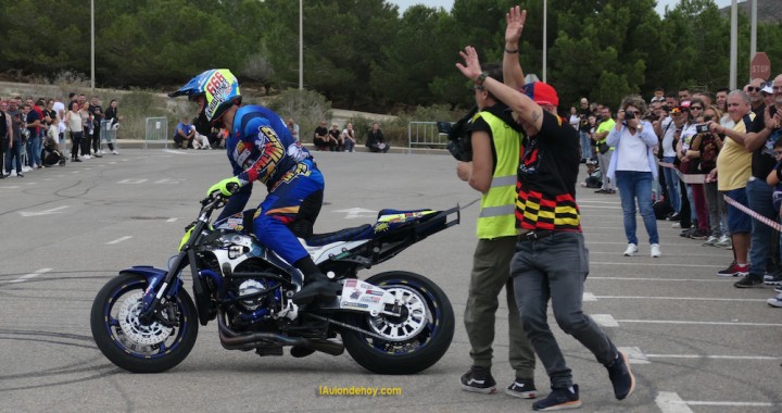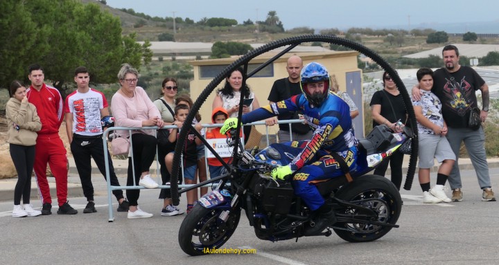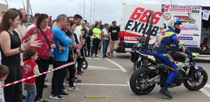 Uno de los momentos 'estrella' ha sido la actuación de Plácido Pérez Benítez, piloto de Puerto Lumbreras de Exhibiciones 666, que lleva una década acudiendo al gran evento motero de La Unión con el objetivo de que el público disfrute y a fe que lo ha conseguido.