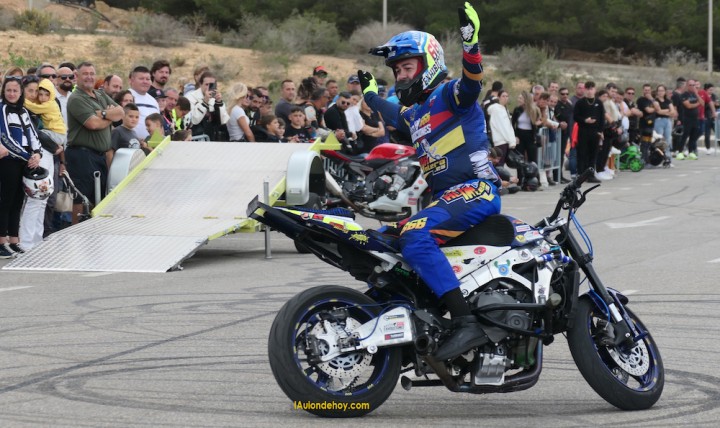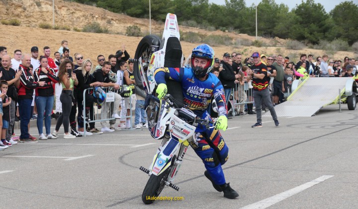 Este 'stunt rider' ('jinete acrobático' es su traducción) cambió el motocross por las acrobacias por una grave lesión que sufrió y se ha convertido en un referente en las concentraciones moteras.