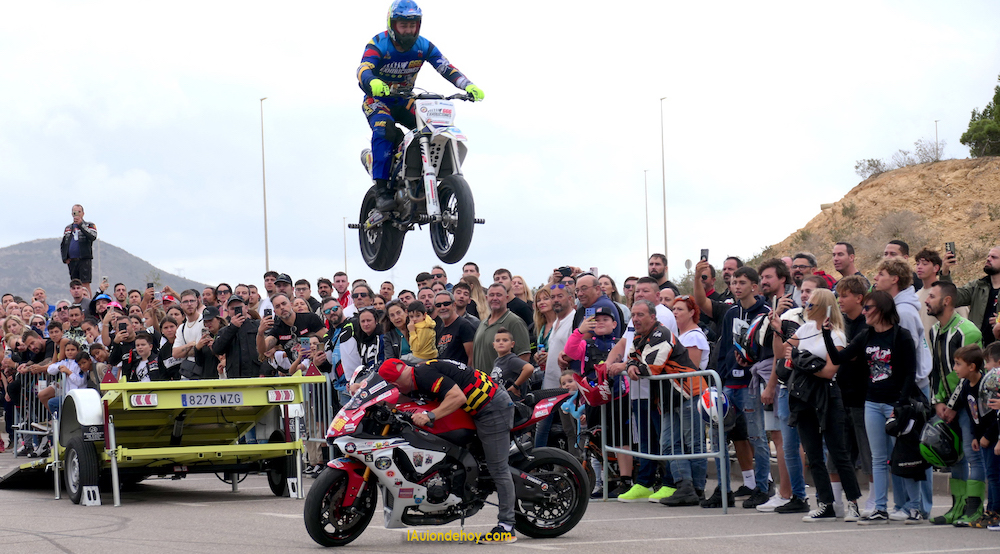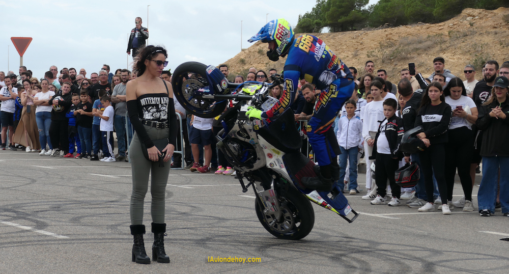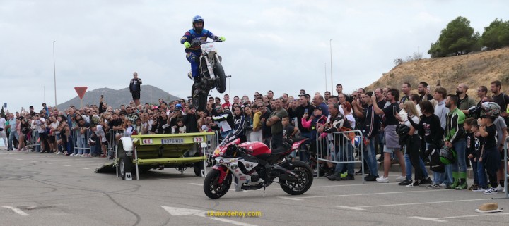 Cerca de dos mil personas pasaron por el recinto del polígono de Lo Bolarín habilitado por el Moto Club La Unión para su gran encuentro anual motero, donde Plácido Pérez, en su décima presencia en esta cita, ha ofrecido un gran espectáculo de acrobacias.