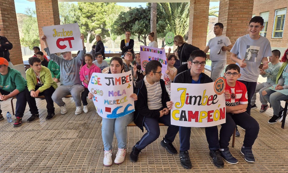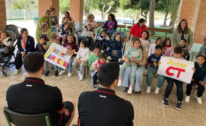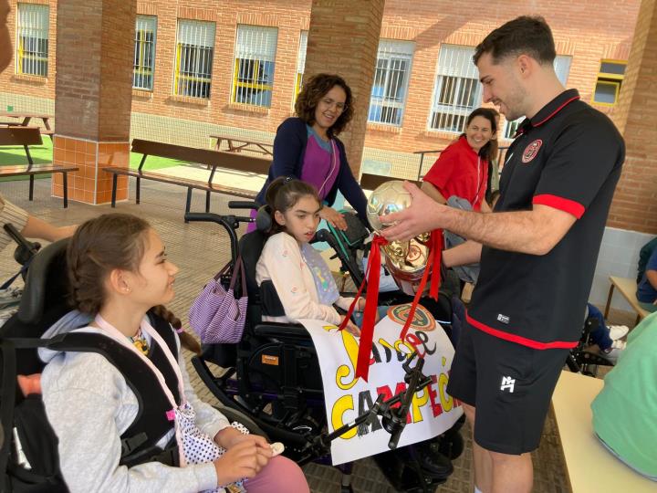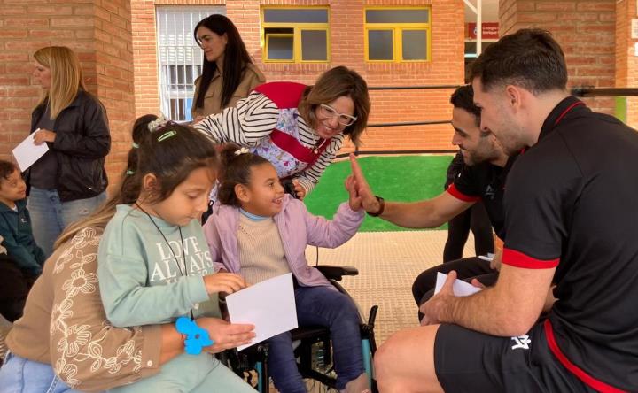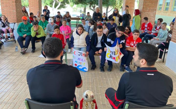 El colegio de educación especial Enrique Viviente de La Unión recibió una visita muy especial y deportiva con los futbolistas Tomaz y Pablo Ramírez, del Jimbee FS Cartagena, uno de los grandes equipos del fútbol sala español.
