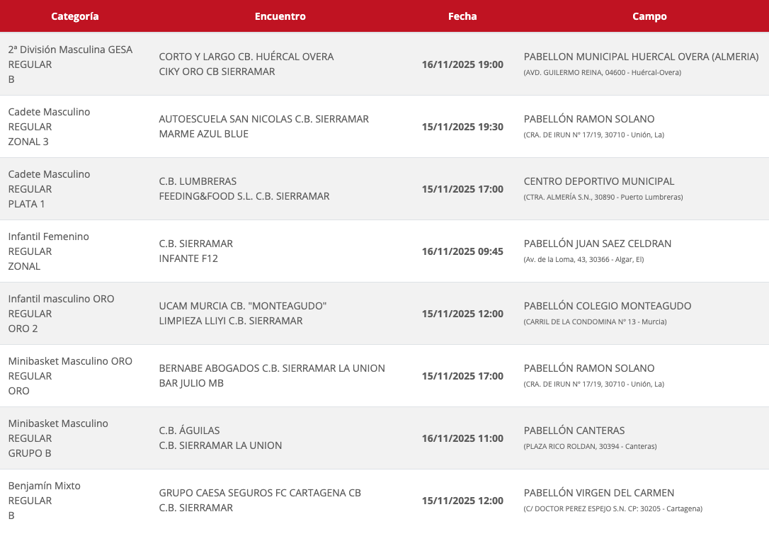 * Conforme vayamos conociendo más horarios de nuestros equipos deportivos los iremos añadiendo a este artículo