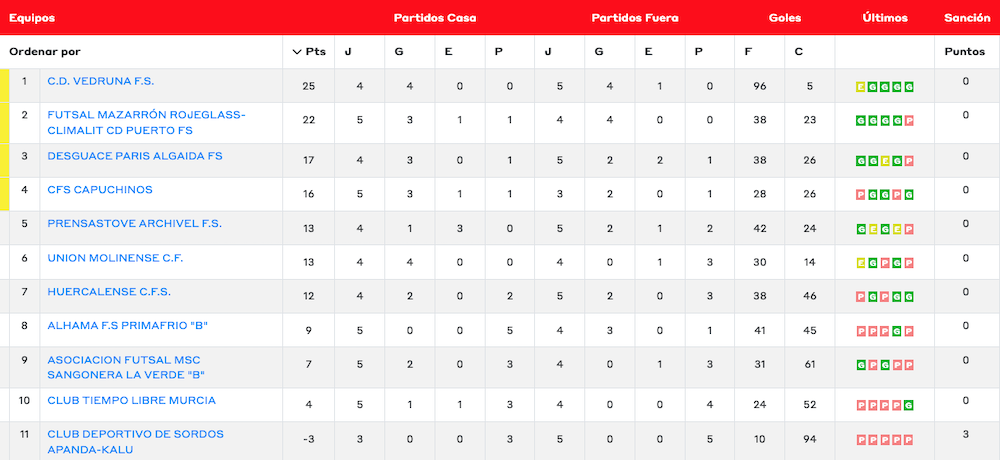 El equipo minero de fútbol sala, pese a sufrir durante la semana problemas en su plantilla con la gripe y otras infecciones respiratorias, resuelve el partido en la pista del Mazarrón, el otro equipo que marchaba invicto, con una goleada cuyos tantos firmaron Pedreño (2), Fernández (2), Egido y Gambín.