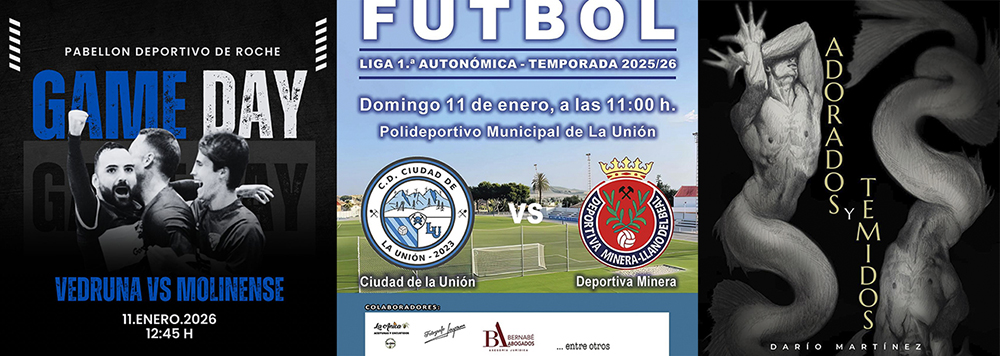 Primera autonómica. Domingo, 11 horas: CD Ciudad de La Unión-Deportiva Minera. Campo Miguel Expósito del polideportivo Antonio Sánchez de La Unión.