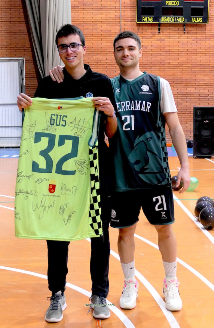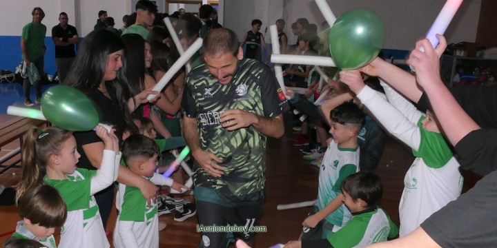 Dos momentos individuales y especiales ha tenido lugar en el pabellón unionense Ramón Solano. Uno ha sido cuando el jugador sénior Salar ha entregado una camiseta firmada por la plantilla del primer equipo a Jesús, ayudante del cuadro técnico y gran animador.
