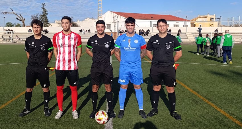 El CD Ciudad de La Unión corta la buena racha de cuatro jornadas consecutivas invicto al sufrir la primera derrota del año 2026 ante un CFB Totana que está por debajo en la clasificación. Los jugadores y árbitros lucieron brazalete verdes de la esperanza en apoyo a la lucha contra el cáncer. En la foto posan con representantes de la AECC de La Unión antes de comenzar el encuentro.