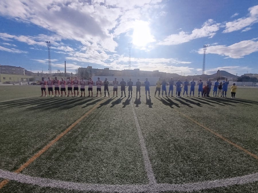 Partido de la jornada 17 de primera autonómica de fútbol disputado en el campo Miguel Expósito del polideportivo municipal Antonio Sánchez de La Unión con arbitraje de Rubén Riquelme López, quien mostró tres cartulinas amarillas a jugadores locales y cuatro, a visitantes. Se guardó un minuto de silencio en recuerdo de Francisco Giménez, amigo de jugadores locales y que fue asesinado hace dos semanas en su domicilio de El Algar. Los jugadores de ambos equipos y el trío arbitral lucieron brazales verdes para mostrar la lucha contra el cáncer. Asistió la directiva de la delegación en La Unión de la Asociación Española contra el Cáncer que preside María Hermógenes.