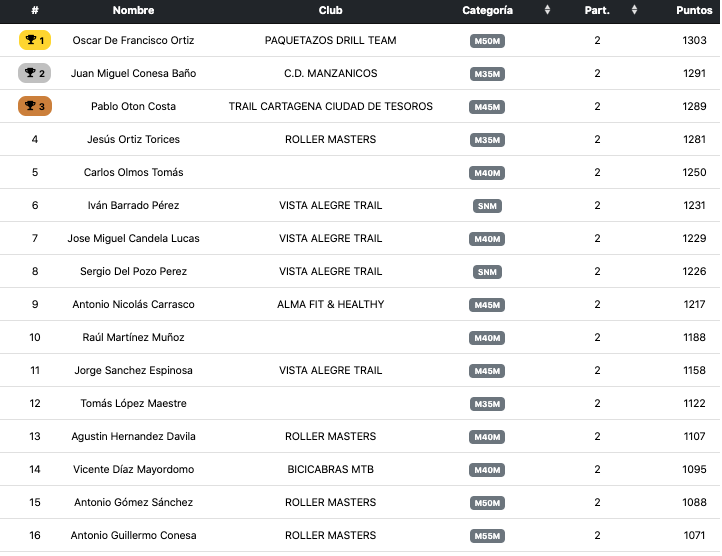 Tras la celebración de dos de las ocho carreras de la 'Carthago Mountain League 2026', Tato es cuarto en la general absoluta y segundo en su categoría. La próxima cita será el 8 de marzo en el 'IV Cross-trail de la villa y condado de Santa Lucía'.