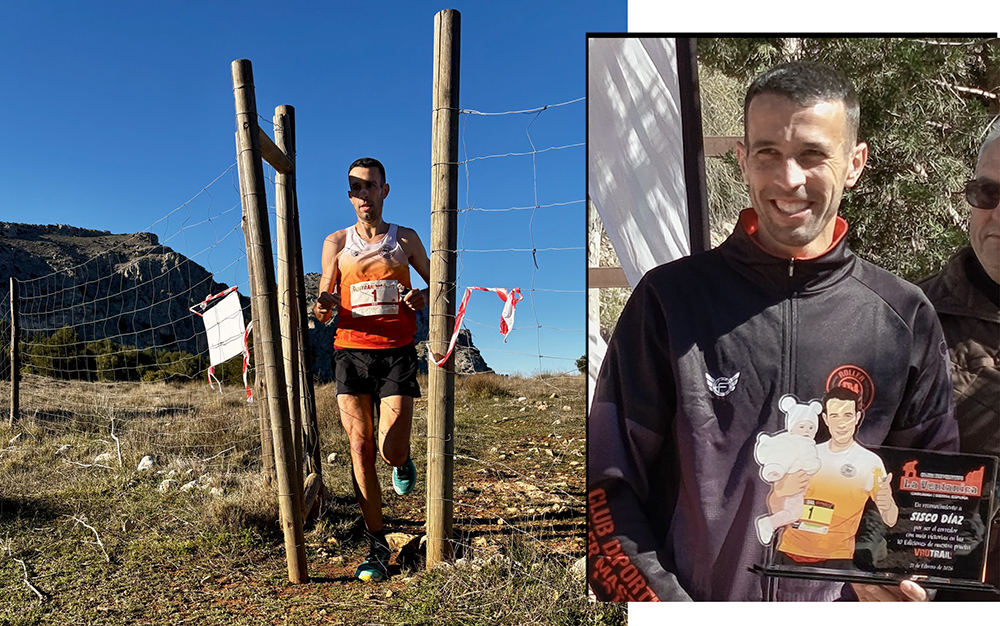 El corredor de El Garbanzal queda tercero en la clasificación general de la prueba ‘Trail 35K extreme’ celebrada por Sierra Espuña, además de un primer puesto en su categoría, pero la sorpresa le llegó cuando le entregaron un trofeo en el que aparece con la tradicional escena de cuando cruza la meta con su hija, que se le ha concedido por ser quien más victorias ha logrado en las diez ediciones de esta carrera.