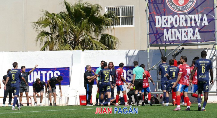 El cuadro del Llano del Beal se gustaba tanto que se quedó muy cerca de anotar el tercero en varias ocasiones. Rubén Mesa pudo definir en un gran robo aprovechando la presión alta, pero entre Ackermann y la defensa le taponaron. A balón parado también se generaban continuas aproximaciones que llevaban la tensión al equipo universitario. Volaba la Minera en todos los sentidos, tanto que Alarcón y Kamal se quedaron cerca de anotar de cabeza, pero sus remates se toparon con las manos de Ackermann.