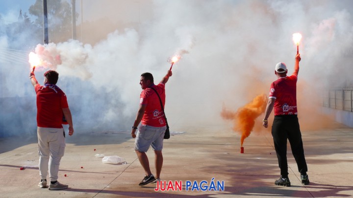 Partido de la jornada 30 del grupo cuarto de Segunda RFEF disputado en el campo Ángel Celdrán de El Llano del Beal (Cartagena). Mil doscientos espectadores. Ambiente de fiestas, con reparto de globos de colores rojos y azules.