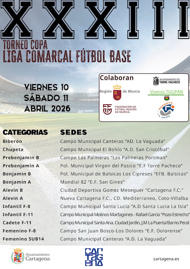 El campeonato de la liga comarcal de fútbol base lo organiza el Ayuntamiento de Cartagena.