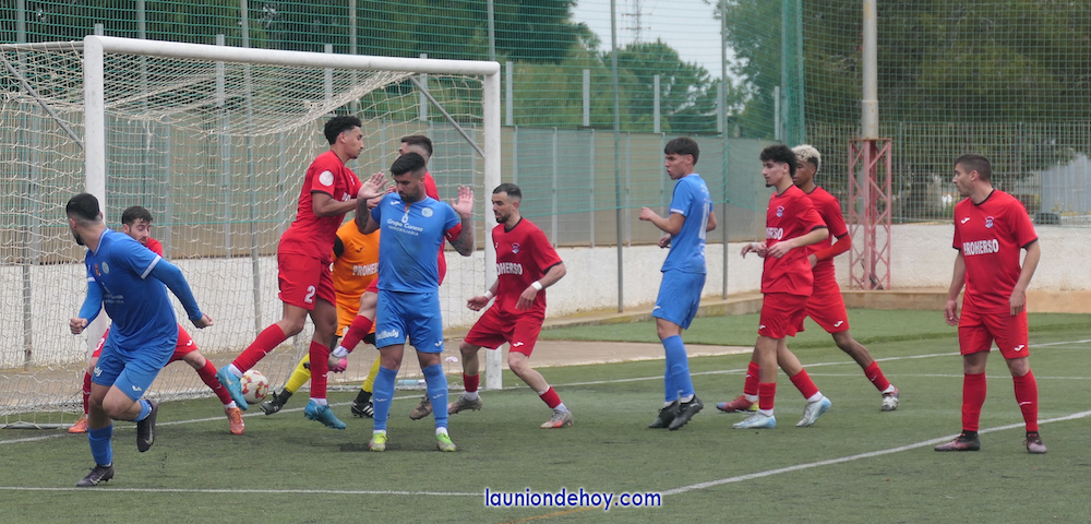 El equipo unionense de primera regional de fútbol plantó cara al EF Dolorense, un aspirante al ascenso que lleva 13 partidos sin perder (12 victorias), perdiendo en el último instante del tiempo añadido de un encuentro en el que también tuvo oportunidades para vencer. En la foto, una buena oportunidad de Quereda que frustró el meta local rechazando a córner