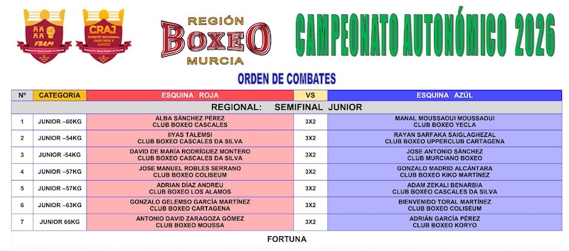 Después de haber superado las eliminatorias previas, Gonzalo García Martínez (La Unión, 7 de julio de 2011), como integrante del Club Boxeo Cartagena, se enfrentará, dentro de la división de púgiles de hasta 63 kilos de peso, a Bienvenido Toral Martínez, del Club Boxeo Coliseum. El unionense tiene como entrenador a José Ramón Rodríguez.