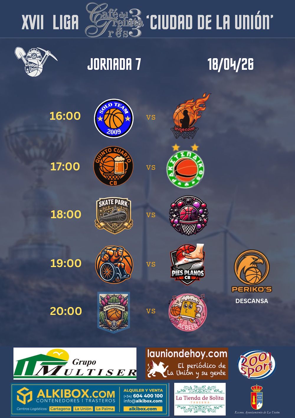 El CD Vedruna cierra la liga enfrentándose al segundo clasificado en un partido que será ensayo para la fase de ascenso, mientras que el juvenil entra en la recta final de la lucha por alcanzar las eliminatorias finales. En fútbol, el Ciudad tratará de sellar la permanencia pese a que enfrente está un aspirante al ascenso, mientras que en juveniles la AD La Unión precisa tener éxito en Cartagena para mantener la esperanza de evitar el descenso. En baloncesto, vuelve a competir tras la Semana Santa el equipo de segunda división del CB Sierramar y hay nueva jornada de la liga local. Un fútbol sala especial y singular se jugará en Portmán con el torneo para sordos veteranos y el domingo hay marcha cicloturista en la ciudad. Antes, el sábado, espectáculo infantil musical en el Museo Minero.