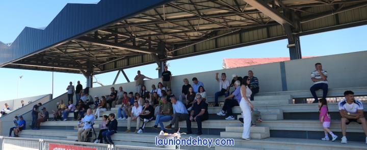 Partido de la jornada 26 de Primera Autonómica de fútbol disputado en el campo Miguel Expósito del polideportivo Antonio Sánchez de La Unión ante cerca de un centenar de espectadores, la mayoría ubicados en la nueva grada cubierta para protegerse del sol en una mañana primaveral.