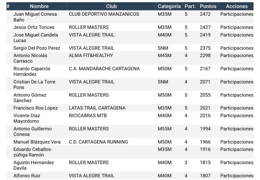 Jesús Ortiz Torices 'Tato' quedó en el puesto 26 de la prueba absoluta (participaron 4.160 corredores) y décimo en su categoría de veteranos A-M de la XV edición de la 'Ruta de las fortalezas' de Cartagena, con un recorrido de 52,3 kilómetros por batería de San Leandro, batería de San Isidoro y Santa Florentina, fuerte de Santa Ana, Trincabotijas, castillo de San Julián, subida al Calvario, Sierra Gorda, cerro de Despeñaperros, Muralla del Mar, castillo de la Concepción, parque arqueológico del Molinete, fuerte de Fajardo, batería de La Podadera, castillo de Galeras, castillo de la Atalaya, Sierra de Pelayo y Escuela de Infantería, en Tentegorra. El unionense del equipo Roller Masters consiguió un tiempo oficial de 4 horas, 36 minutos y 42 segundos. Tato ocupa, tras este resultado, el segundo puesto de la clasificación general de la 'VI King of the mountain 2026', que es la liga de carreras del municipio de Cartagena esta temporada. El unionense lleva 2.427 puntos, mientras que el primero (Juan Miguel Conesa, del CD Manzanicos), acumula 2.472, y el tercero (José Miguel Candela, de Vista Alegre Trail), suma 2.419. Es octavo Antonio Gómez Sánchez, del unionense equipo Roller Masters, con 2.071.
