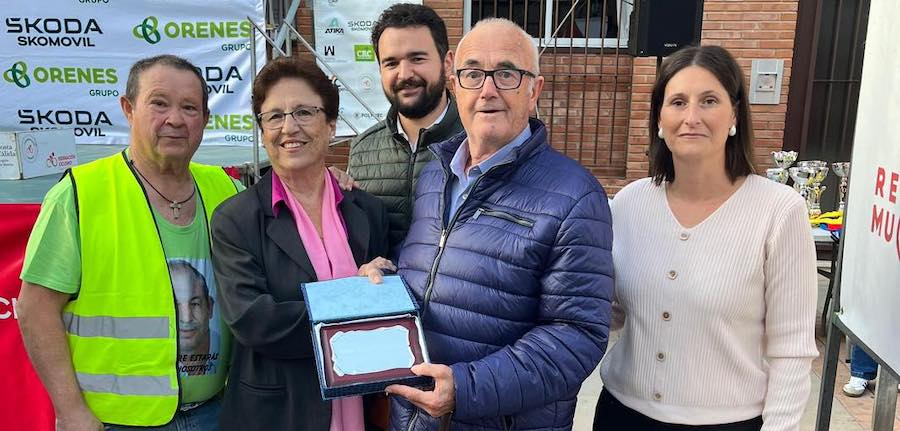 Juan Martínez López recibió ayer tarde, de manos del alcalde, Joaquín Zapata, una placa de reconocimiento por su labor durante muchos años como secretario del Club Ciclista de La Unión.