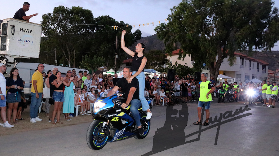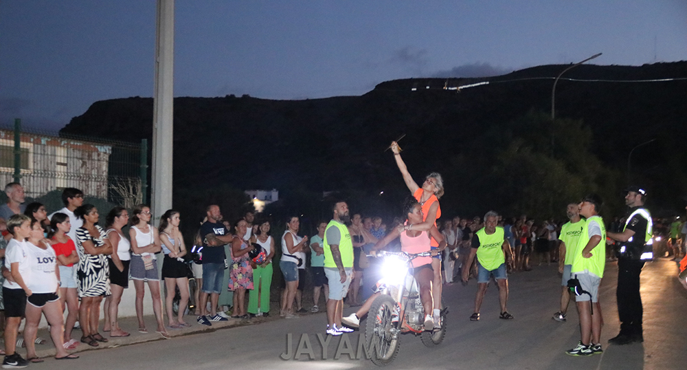 Las fiestas del pueblo mediterráneo celebró un animado concurso de ensartar cintas subidos en una moto (adultos) o en una bicicleta (niños), siendo la corte de honor la encargada de colocar las bandas.