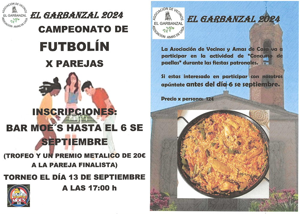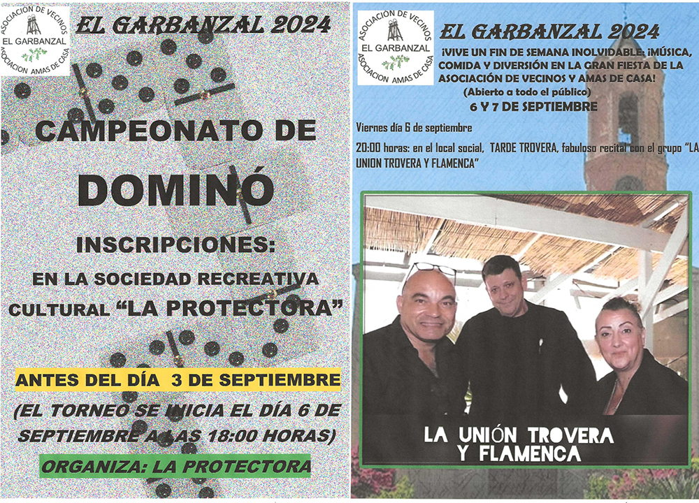 La villa unionense tendrá el próximo mes sus fiestas patronales con una antesala muy animada con las actividades que organizan las asociaciones de vecinos y de amas de casa los días viernes 6 y sábado 7, con trovos, música y bocadillo gigante incluido, para en la semana siguiente, entre otras propuestas, tener lugar concursos de arroces, presentación de 'Las chicas de oro' y la disputa de campeonatos de futbolín y el novedoso lanzamiento de garbanzos.