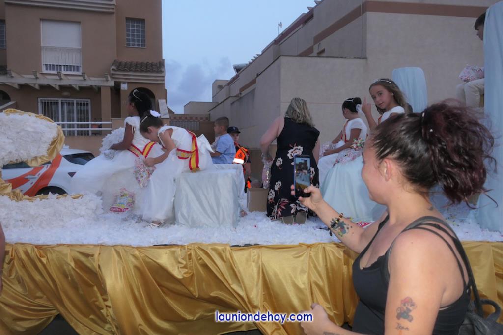 El cortejo lo cerró la carroza con la corte real de las fiestas, que iba tirada por el vehículo de Protección Civil de La Unión. Reyes y damas estuvieron lanzando caramelos al público desde el inicio.