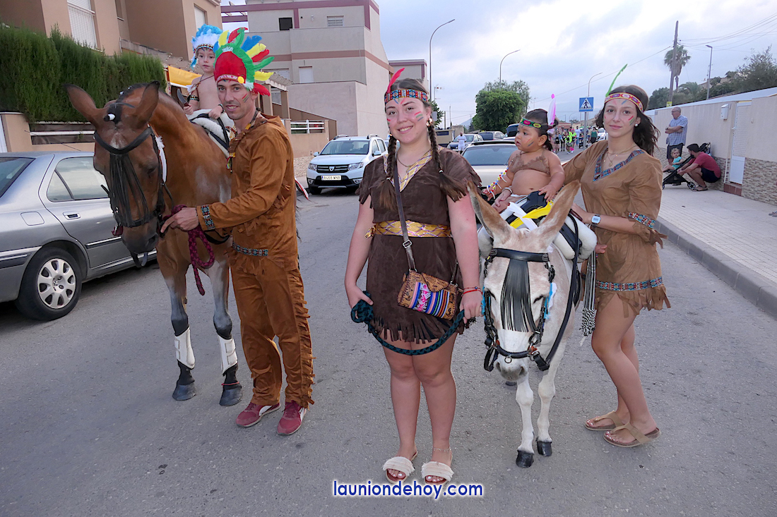 Fueron novedad, dentro de un grupo de indios con arcos y hachas, la yegüa 'Shakira' y la mula 'Alegría'.