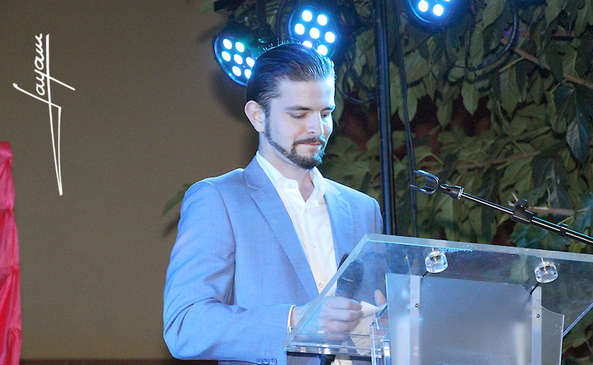 El alcalde distinguió al pregonero entregándole una insignia institucional.