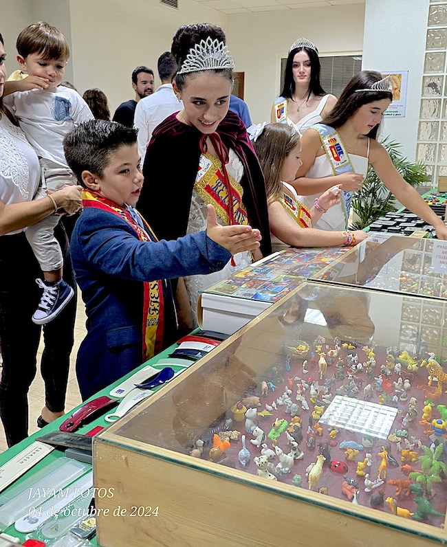 El alcalde, Joaquín Zapata, y una representación de la corte real de las Fiestas del Rosario inauguraron la exposición de colecciones de objetos que organiza Fundación Vedruna y que tiene como marco la antigua sede del Registro de la Propiedad en la calle Mayor de La Unión.