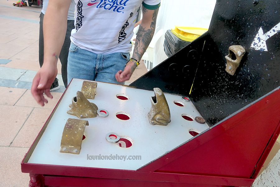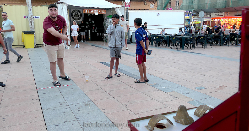 ‘Peña latina’ organizó en el recinto festero, un año más, la competición por equipos del juego de la rana, siendo la formación ganadora la integrada por Dani, Álex y Nordin, peñistas del Rincón de la Mira. El juego consiste en lanzar unos pequeños aros metálicos y según por el agujero por los que entren suman unos determinados puntos.