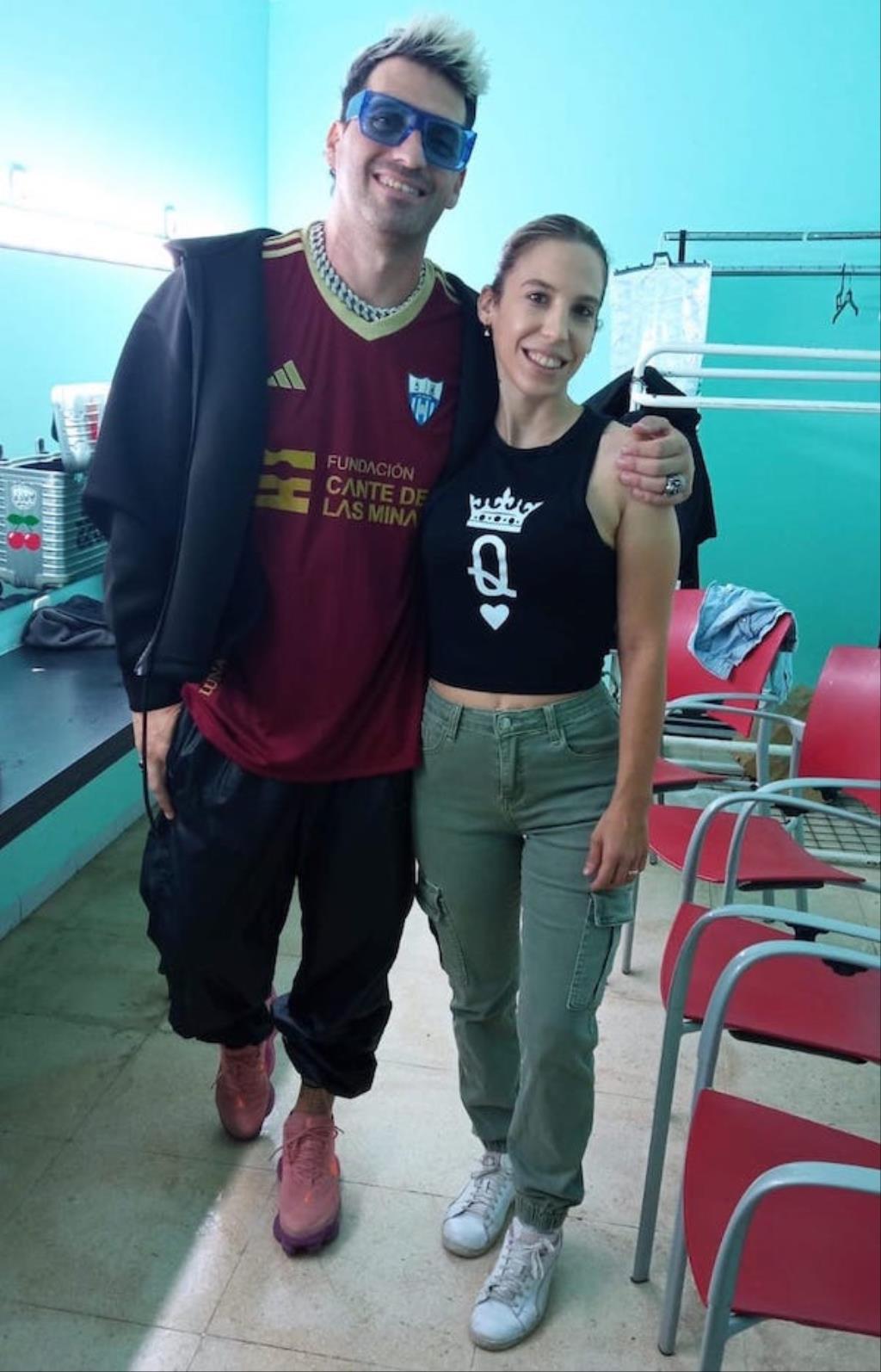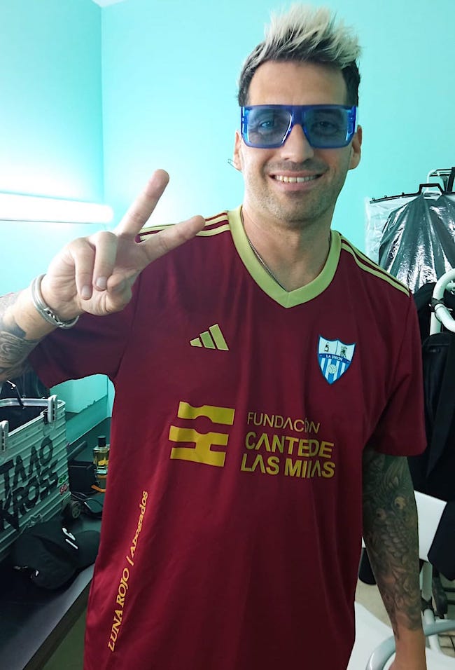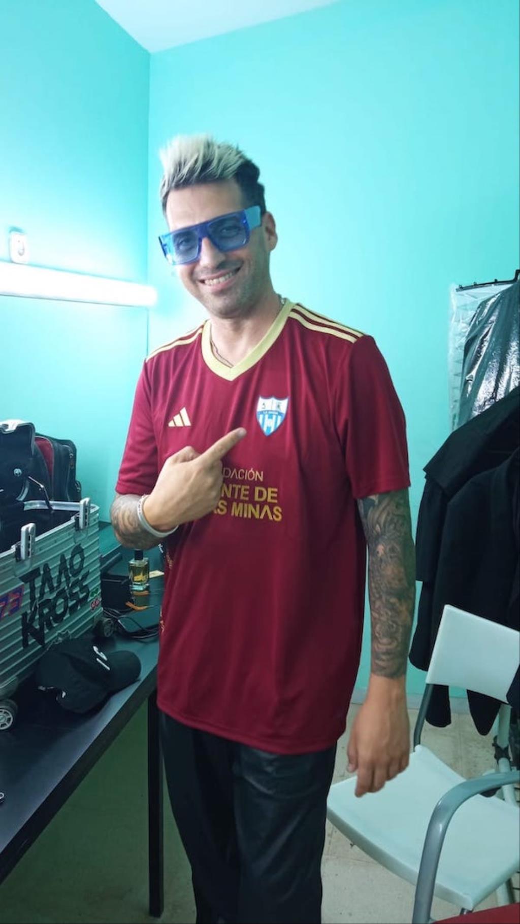Taao Kross con la camiseta de La Unión Atlético con publicidad del Cante de las Minas