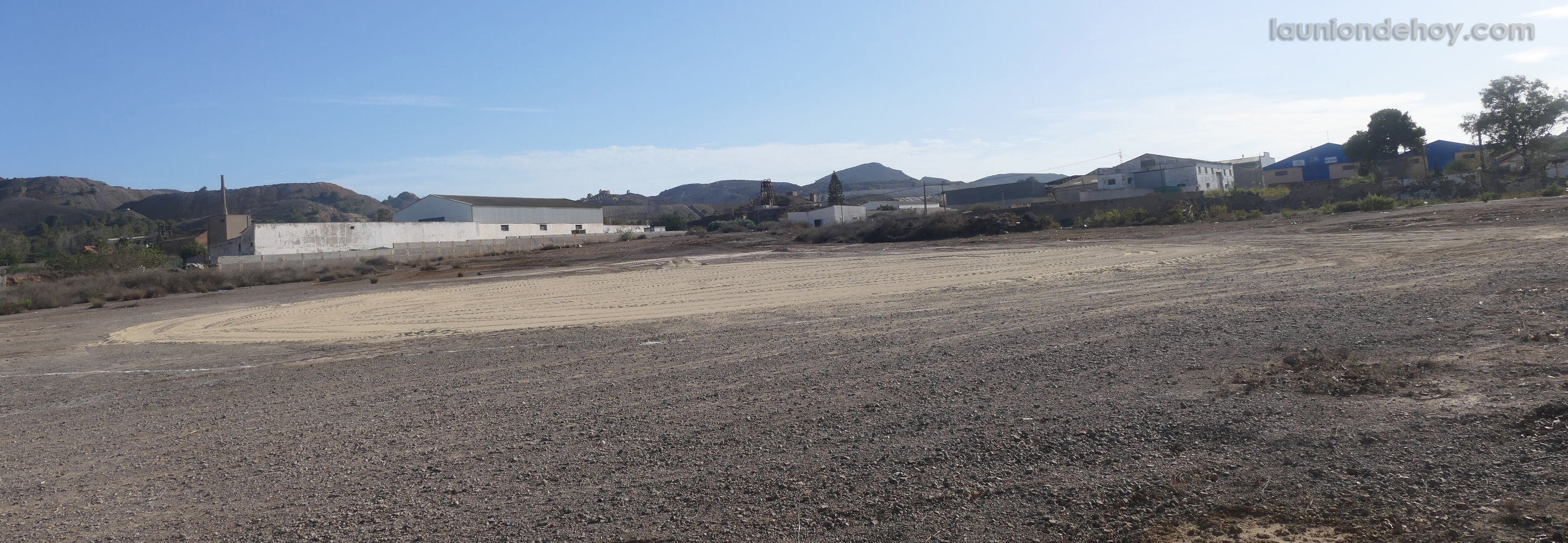 La tierra de color ocre sobre la que se celebran los espectáculos taurinos ha sido el primer paso en la instalación de la plaza de toros portátil junto a la calle Cartagena de cara al festejo de este próximo sábado.