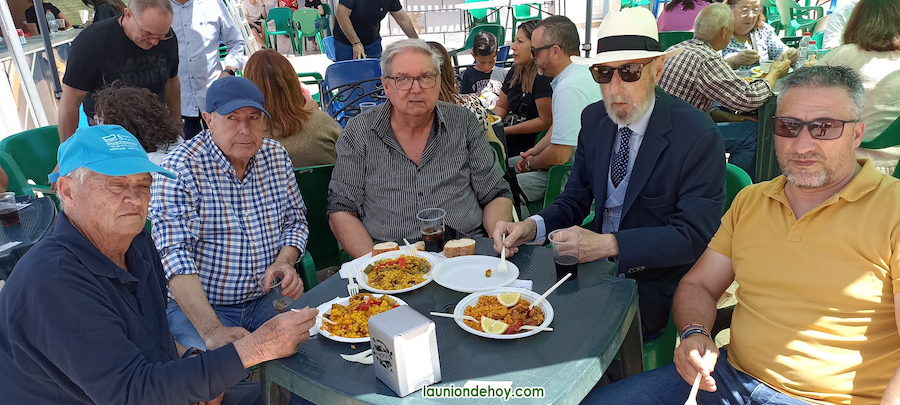 Las cruces de mayo procesionistas de La Unión culminaron con la entrega de premios de los diferentes concursos organizados por la cofradía. Las agrupaciones del Nazareno y del Cristo de los Mineros recibieron los destinadores a mejores cruces, mientras que para Fotografía Jayam fue el correspondiente al adorno primaveral de su escaparate. En la foto, el colectivo que preside Antonio Pagán con la paellera que acogió el galardón gastronómico de esta edición.