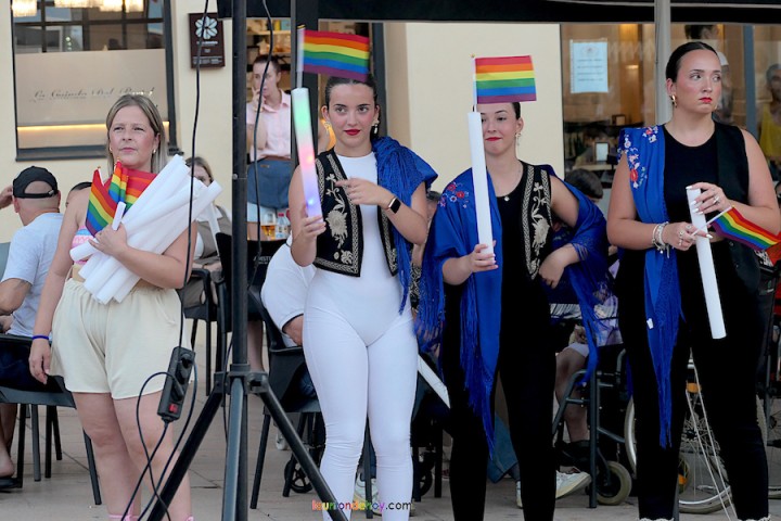 A las 21 horas, Isabel Fuster y Darío Martínez 'Pantera' abrieron el espectáculo como presentadores de la gala, además de lanzar varios mensajes, como que ser visible "es una necesidad", que por la libertad "se lucha todo el año" y que el amor "perdura después de la muerte", entre otros. Ambos lucieron vestuario setentero en tributo a la primera marcha del 'Orgullo', que tuvo lugar en 1969 en Oslo (Noruega), enraizando en la década siguiente. "Este movimiento nació libre, no lo ensuciemos", proclamaron.