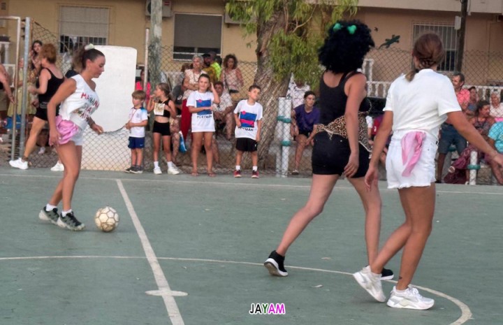 Las pistas deportivas de Portmán acogieron el simpático y tradicional partido de futbito de solteras, casadas y divorciadas con notable afluencia de espectadores.