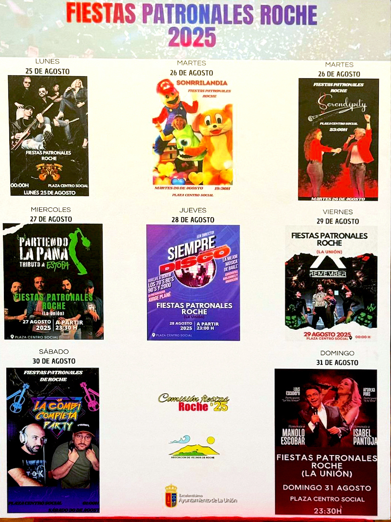 El alcalde de La Unión, Joaquín Zapata, ha destacado que “las fiestas de Roche son una cita muy esperada cada verano y este año hemos querido dar un paso más, apostando por una programación que combina tradición y modernidad, y que responde a las expectativas de un pueblo vivo y participativo”.
