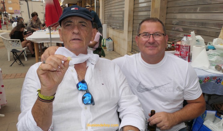 La jornada final de las Fiestas del Rosario ha contado con la celebración del popular concurso de arroces, cuyos triunfadores publicamos en un artículo propio en este mismo periódico, para en éste centrarnos en el muy buen ambiente que, un año más, se ha transmitido desde todos los grupos que se han formado, la mayoría con paelleras en activo, aunque en alguna peña también han optado esta vez por una sartenada de migas. Sin embargo, el capítulo gastronómico ha ido más allá, pues, además de ver varias patas jamoneras como iban 'adelgazando', sobre las mesas ha sido muy amplio la variedad de viandas salados y dulces, pues también en el capítulo de postres ha existido derroche. La animación sonora durante la celebración la han puesto el concierto de la Agrupación Musical La Unión, al principio, para después coger el protagonismo DJ Rául. También reseñar que hubo algo menos de grupos que años anteriores y que entre los visitantes estuvieron el hermano mayor de la Cofradía del Cristo de los Mineros, José Cortado; el cronista oficial de La Unión, Gonzalo Wandosell; y la presidenta de la AECC local, María Hermógenes, entre otros.